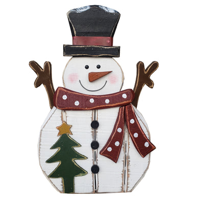 85255-H - 21.5in Wooden Snowman with Tree Christmas Decor Indoor Outdoor UseSKU: 85255-H