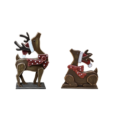 85255-I - 2 Piece Wooden Reindeer Christmas Decor Set Indoor Outdoor UseSKU: 85255-I