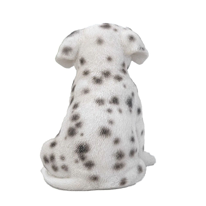 Detailed sitting Dalmation puppy figurine. Stunning craftsmanship with realistic details and features. Add a fun and unique element of charm to your garden, deck, home, office, or any outdoor space with this adorable figurine. Makes a great gift for dog lovers.